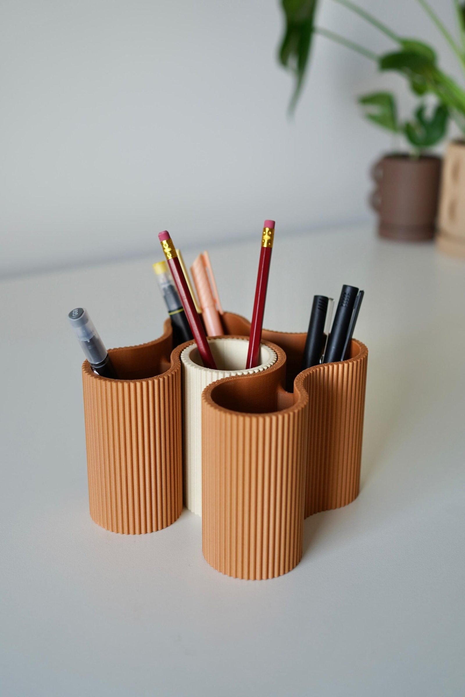 Dens bløde, bølgende form og karakteristiske riflede overflade giver et sanseligt og moderne udtryk, der passer ind i både hjemmekontorer og professionelle arbejdsmiljøer. Den rummer fem separate rum i forskellige størrelser, hvilket gør den ideel til opbevaring af penne, tuscher, pensler, saks, clips eller andre små redskaber, du bruger i hverdagen.